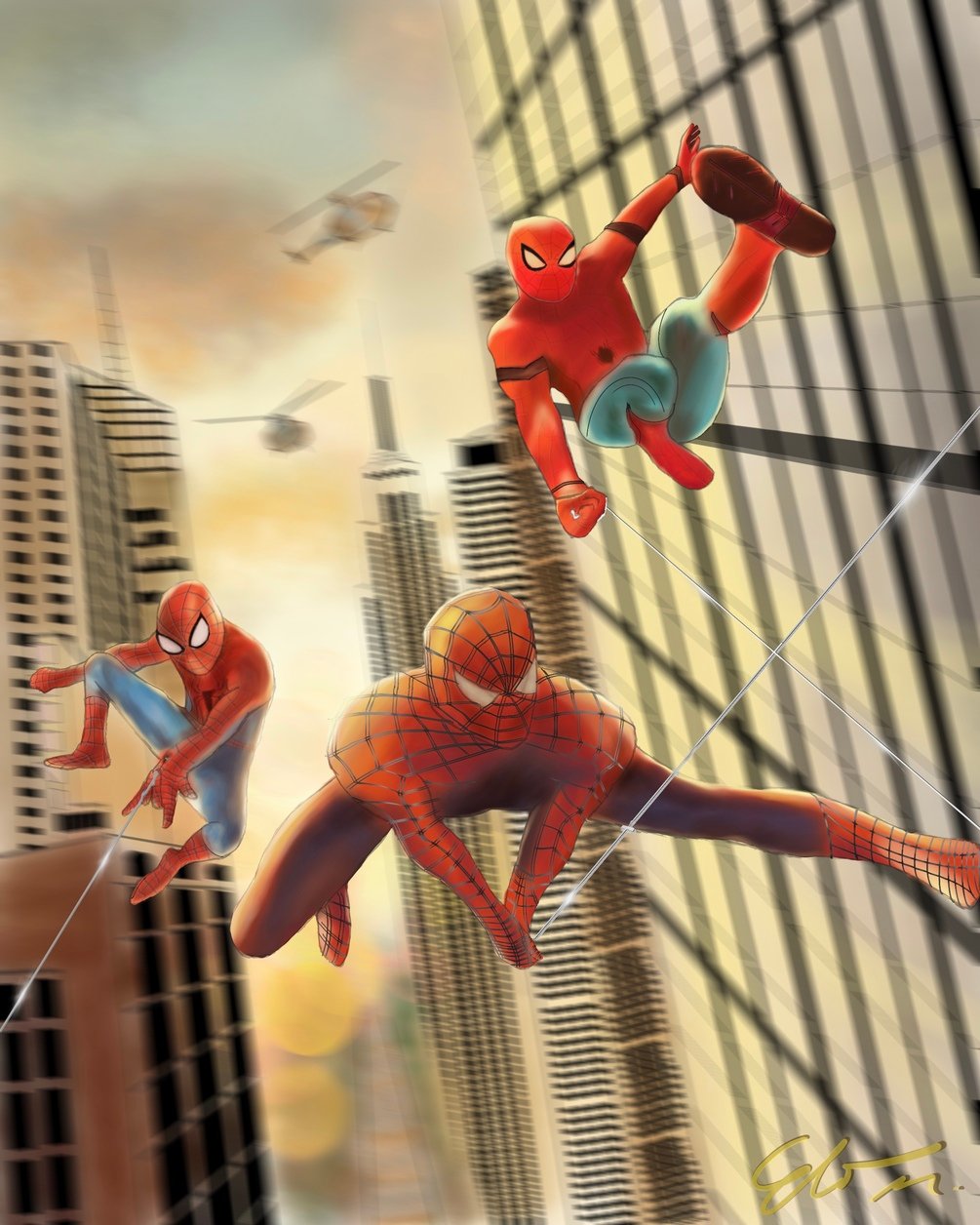 Custom made spidey poster created by using the round bush and the airbrush in procreate